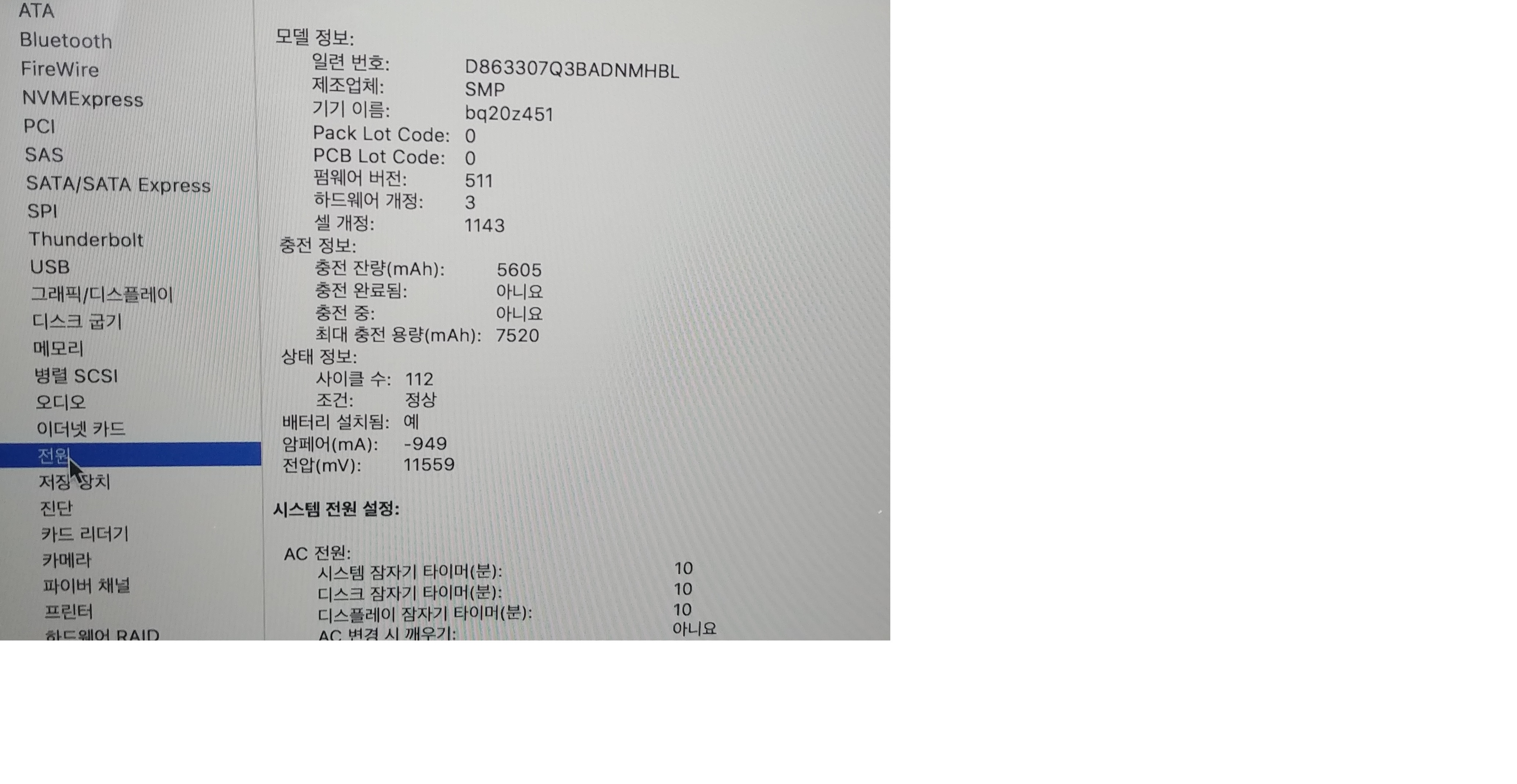 사이클 수 112  최대충전용량 7520