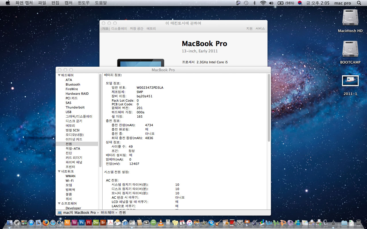 맥os는 10.7.5 프로그램들도 잘 설치되어 있습니다