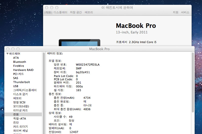 맥북 프로 2011 early 13인치입니다