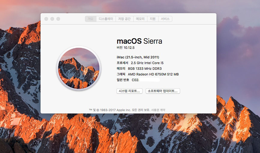 맥os 10.12 시에라 설치됨