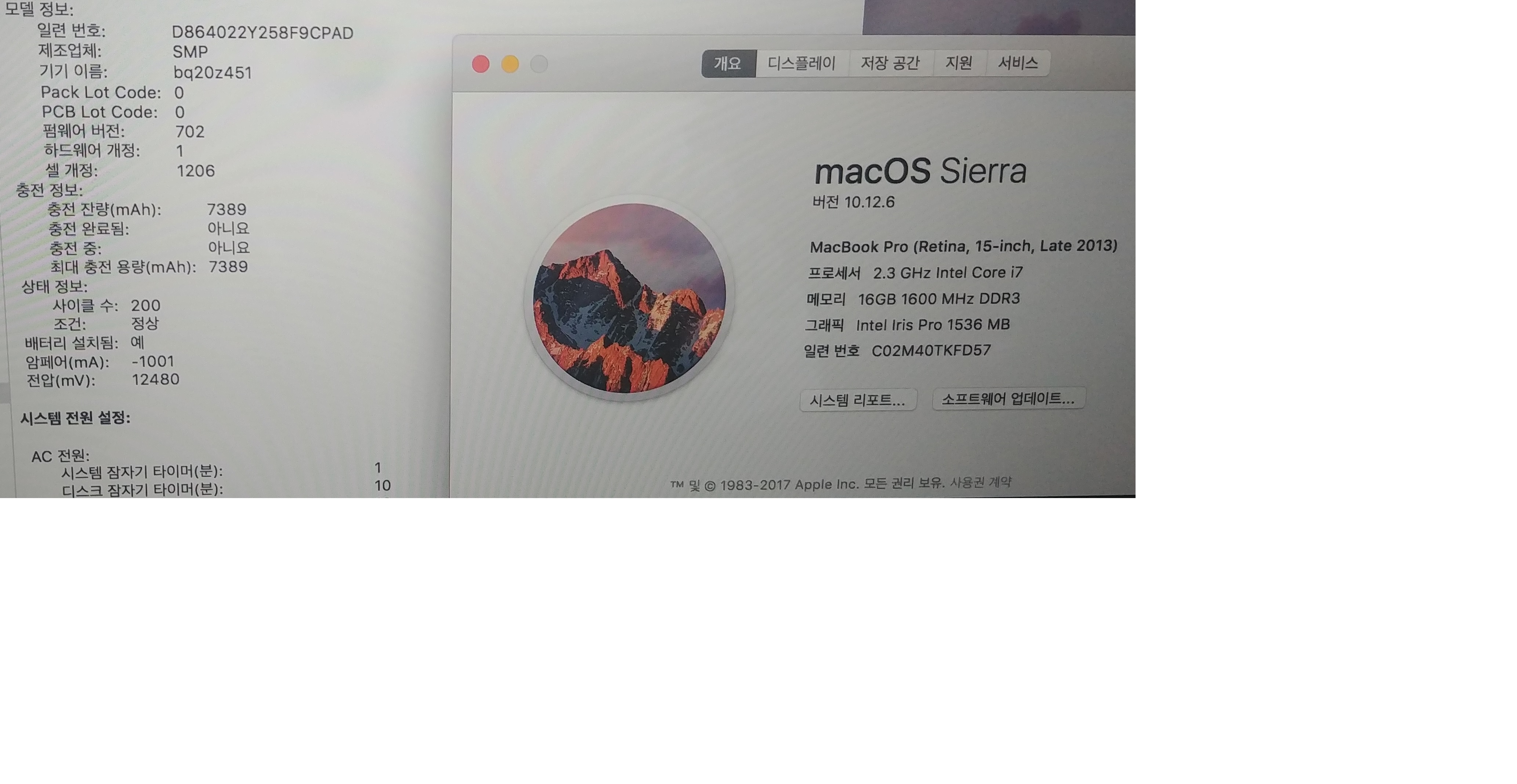 배터리 사이클 200  최대충전용량 7389
